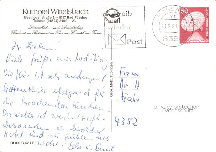 72478282 alte Postkarte Bad Fuessing Kurhotel Wittelsbach postalisch gelaufen Erhaltung siehe scans KatCode: 11110009275116