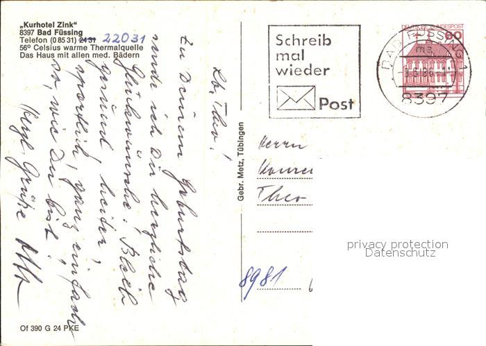 72575928 alte Postkarte Bad Fuessing Kurhotel Zink postalisch gelaufen Erhaltung siehe scans [LiesaD40] KatCode: 11110009275116