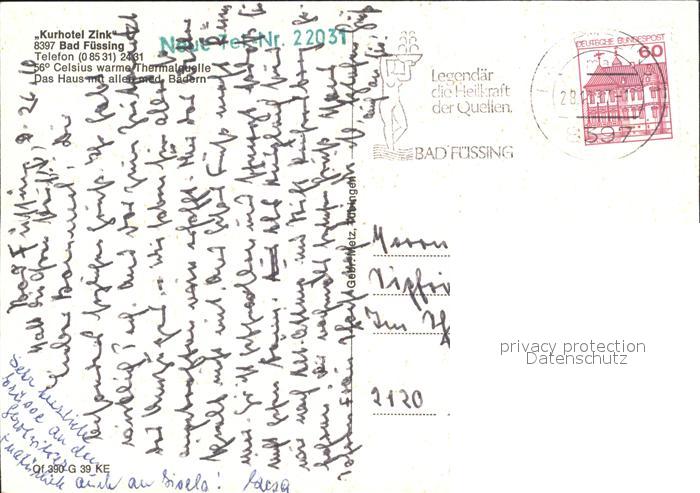 72072044 alte Postkarte Bad Fuessing Kurhotel Zink postalisch gelaufen Erhaltung siehe scans KatCode: 11110009275116