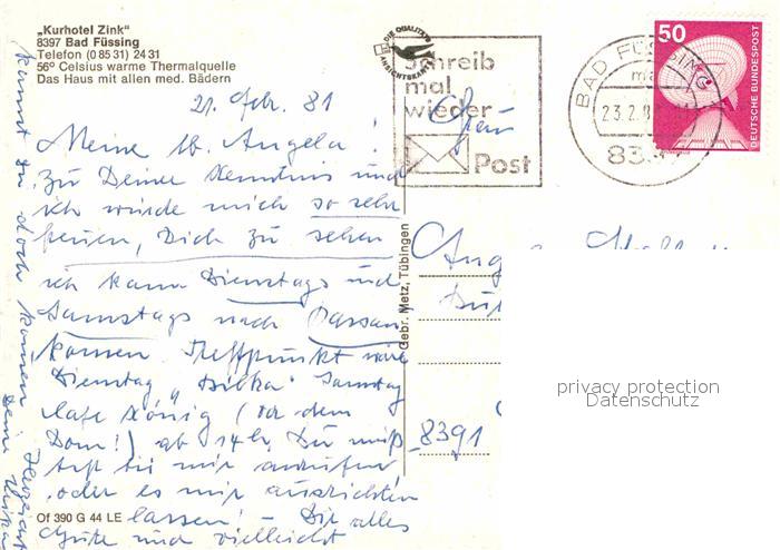 72824194 alte Postkarte Bad Fuessing Kurhotel Zink Swimming Pool Hallenbad postalisch gelaufen Erhaltung siehe scans [FriedD77] KatCode: 11110009275116