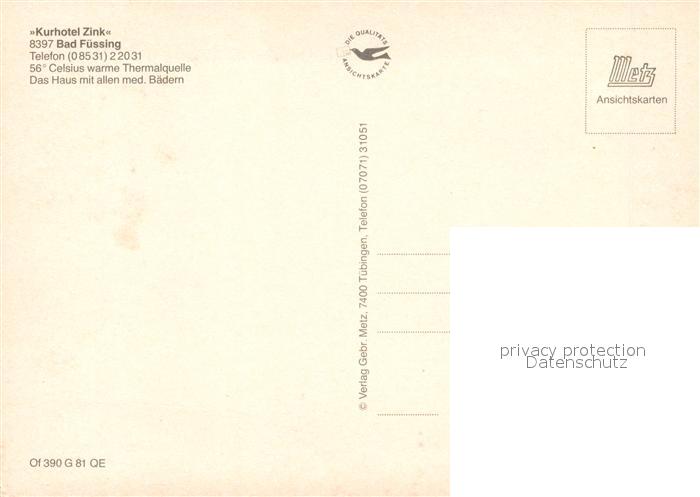 73049426 Bad Fuessing Kurhotel Zink postalisch nicht gelaufen Erhaltung siehe scans [KathaD81] KatCode: 11110009275116