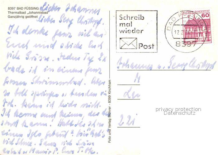 72684730 alte Postkarte Bad Fuessing Kurklinikum Johannesbad postalisch gelaufen Erhaltung siehe scans [AndreD76] KatCode: 11110009275116