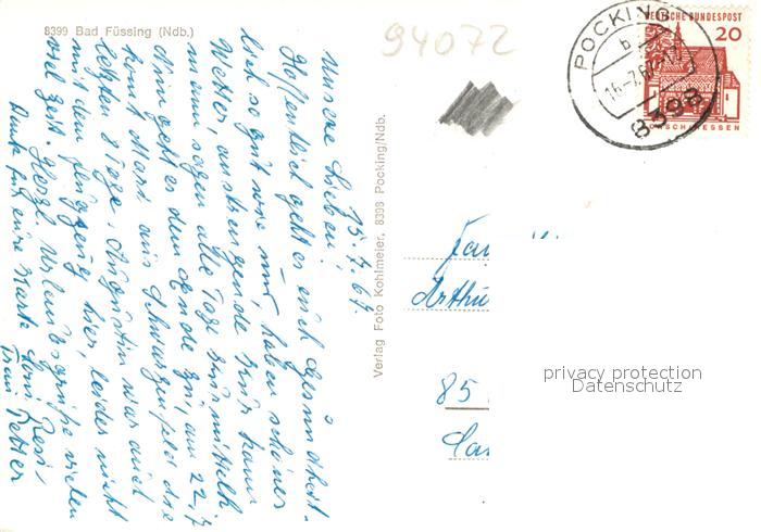 72987170 alte Postkarte Bad Fuessing Kurmittelhaus Kapelle Tannenhof Pension Filicitas Rundes Becken Gaestehaus Hoegner Pension Muenchner Kindl postalisch gelaufen Erhaltung siehe scans [WerneD78] KatCode: 11110009275116