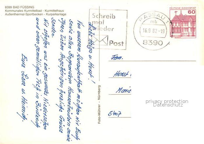 73010101 alte Postkarte Bad Fuessing Kurmittelhaus Sportbecken Kurparkanlage postalisch gelaufen Erhaltung siehe scans [WerneD78] KatCode: 11110009275116