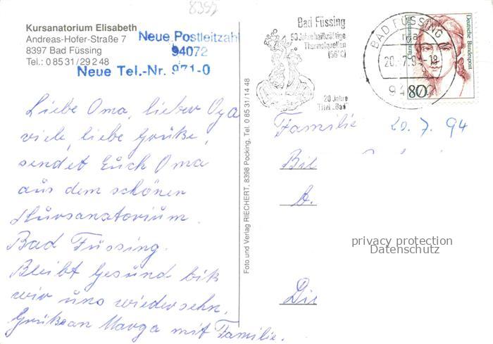 74049556 alte Postkarte BAD FuessING Kurort Kursanatorium Elisabeth postalisch gelaufen Erhaltung siehe scans [FriedD77] KatCode: 11110009275116