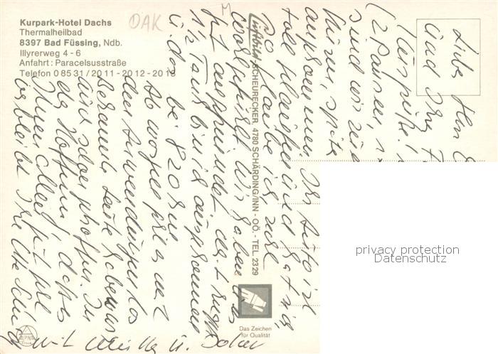 73776078 Bad Fuessing Kurpark Hotel Dachs postalisch nicht gelaufen Erhaltung siehe scans [WerneD78] KatCode: 11110009275116