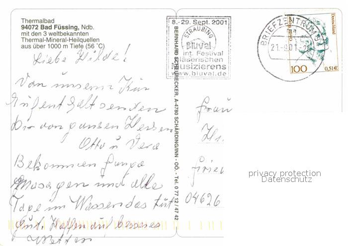 72859251 alte Postkarte Bad Fuessing Kurpark Schwimmbaeder Kurhaus Terrasse postalisch gelaufen Erhaltung siehe scans [WerneD78] KatCode: 11110009275116