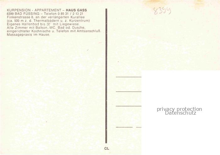 74049552 BAD FuessING Kurpension Haus Gass Thermalkurort postalisch nicht gelaufen Erhaltung siehe scans [FriedD77] KatCode: 11110009275116