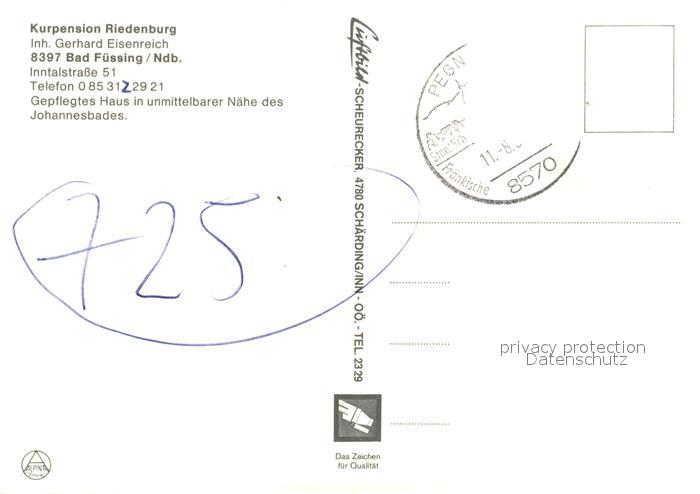 73042555 alte Postkarte Bad Fuessing Kurpension Riedenburg Gastraum Hallenbad postalisch gelaufen Erhaltung siehe scans [FriedD77] KatCode: 11110009275116