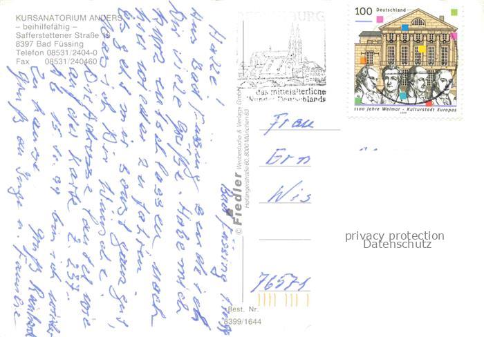 74049683 alte Postkarte BAD FuessING Kursanatorium Anders Rezeption Speisesaal postalisch gelaufen Erhaltung siehe scans [FriedD77] KatCode: 11110009275116