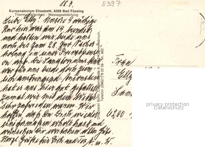 73162956 alte Postkarte Bad Fuessing Kursanatorium Elisabeth postalisch gelaufen Erhaltung siehe scans [LiesaD40] KatCode: 11110009275116