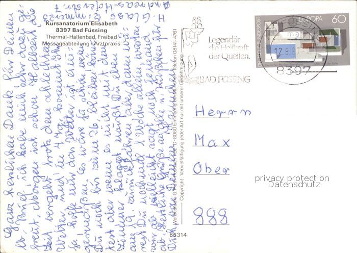 72033953 alte Postkarte Bad Fuessing Kursanatorium Elisabeth postalisch gelaufen KatCode: 11110009275116
