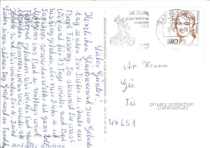 72542616 alte Postkarte Bad Fuessing Kurwohnanlage Johannesbad postalisch gelaufen Erhaltung siehe scans [KathaD75 kv015box] KatCode: 11110009275116