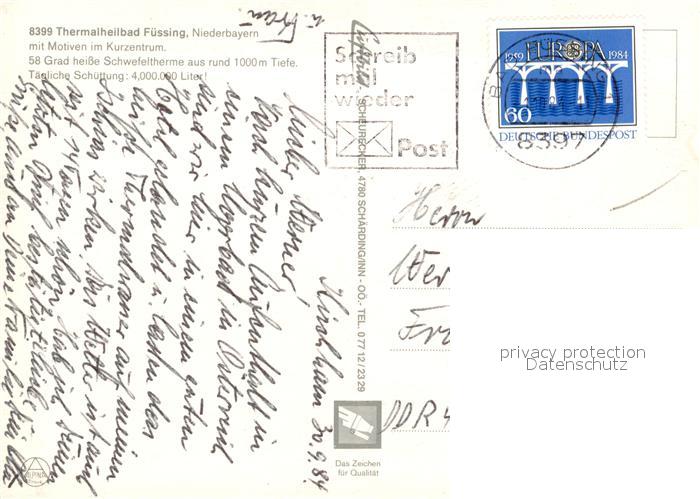 73110395 alte Postkarte Bad Fuessing Kurzentrum postalisch gelaufen Erhaltung siehe scans [NatalD47] KatCode: 11110009275116