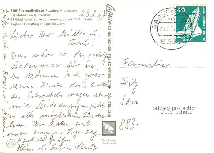 72993738 alte Postkarte Bad Fuessing Kurzentrum postalisch gelaufen Erhaltung siehe scans [AndreD76] KatCode: 11110009275116