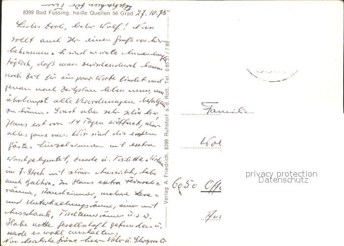 72238530 alte Postkarte Bad Fuessing Kurzentrum postalisch gelaufen Erhaltung siehe scans KatCode: 11110009275116