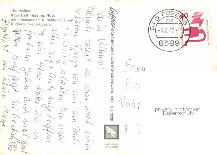 72850924 alte Postkarte Bad Fuessing Kurzentrum Fliegeraufnahme postalisch gelaufen Erhaltung siehe scans [NatalD47] KatCode: 11110009275116