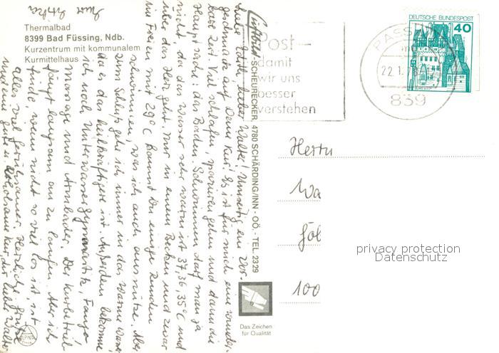 72991459 alte Postkarte Bad Fuessing Kurzentrum Freibad Schwimmhalle postalisch gelaufen Erhaltung siehe scans [LiesaD40] KatCode: 11110009275116