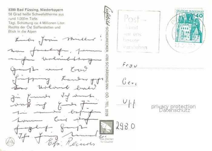 72783896 alte Postkarte Bad Fuessing mit Blick zum Hoellengebirge Schafberg Fliegeraufnahme postalisch gelaufen Erhaltung siehe scans [FriedD77] KatCode: 11110009275116