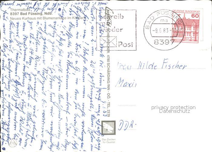 72374673 alte Postkarte Bad Fuessing Neues Kurhaus Blumenanlage Kurpark postalisch gelaufen Erhaltung siehe scans KatCode: 11110009275116