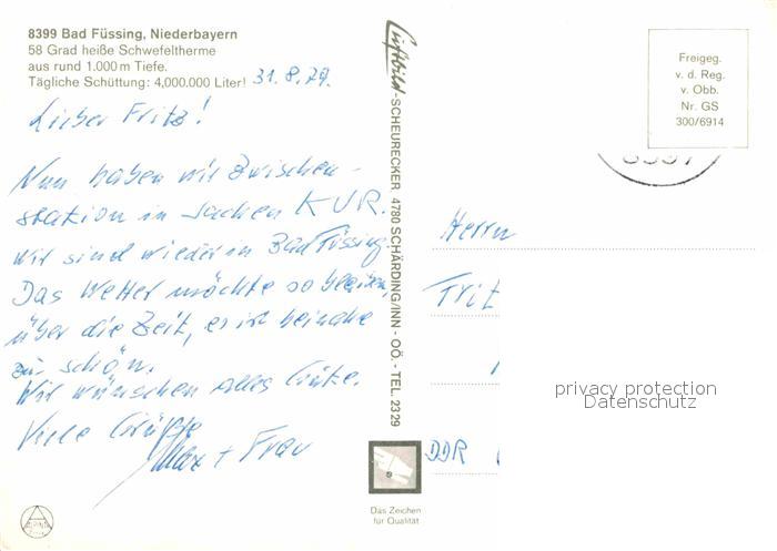 72772215 alte Postkarte Bad Fuessing Panorama postalisch gelaufen Erhaltung siehe scans [AndreD76] KatCode: 11110009275116