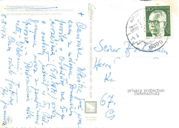 74049563 alte Postkarte BAD FuessING Panorama Stift Reichersberg postalisch gelaufen Fliegeraufnahme Erhaltung siehe scans [FriedD77] KatCode: 11110009275116