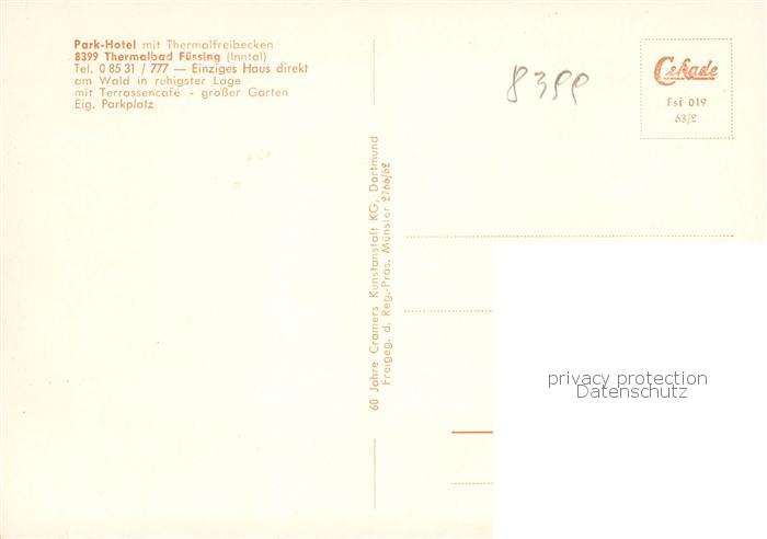 73866644 Bad Fuessing Park-Hotel mit Thermalbad postalisch nicht gelaufen Fliegeraufnahme Erhaltung siehe scans [FriedD77] KatCode: 11110009275116