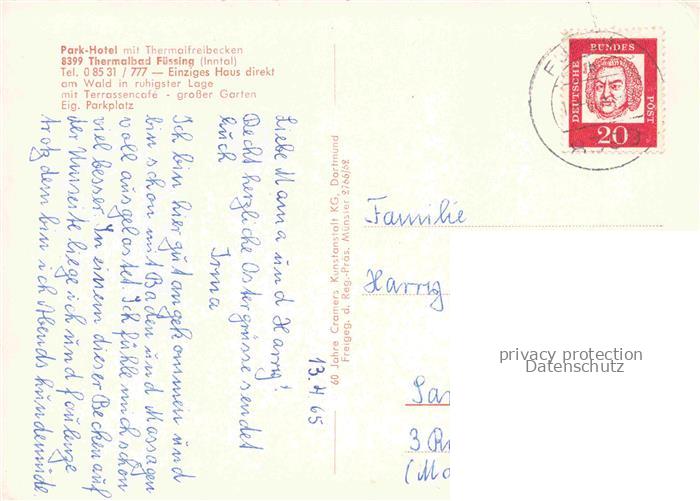 74049696 alte Postkarte BAD FuessING Parkhotel Thermalbad Freibecken postalisch gelaufen Fliegeraufnahme Erhaltung siehe scans [FriedD77] KatCode: 11110009275116