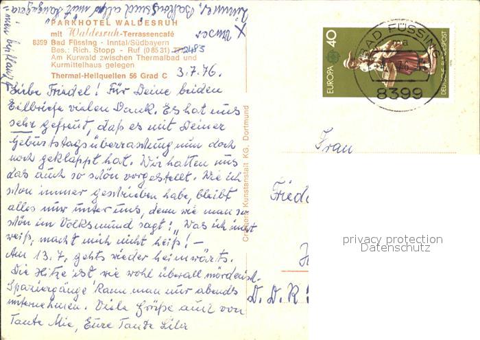 71960293 alte Postkarte Bad Fuessing Parkhotel Waldesruh postalisch gelaufen Erhaltung siehe scans KatCode: 11110009275116