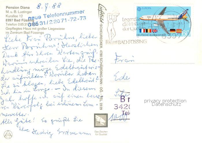 73663636 alte Postkarte Bad Fuessing Pension Diana postalisch gelaufen Erhaltung siehe scans [FriedD77] KatCode: 11110009275116