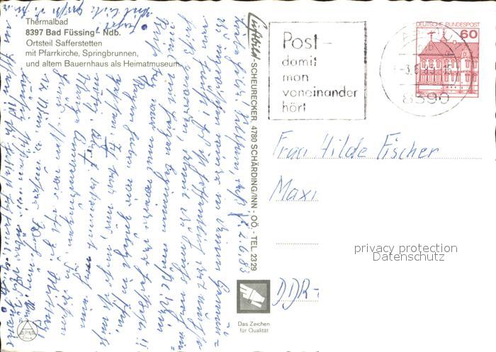 72374671 alte Postkarte Bad Fuessing Pfarrkirche Springbrunnen postalisch gelaufen Erhaltung siehe scans KatCode: 11110009275116