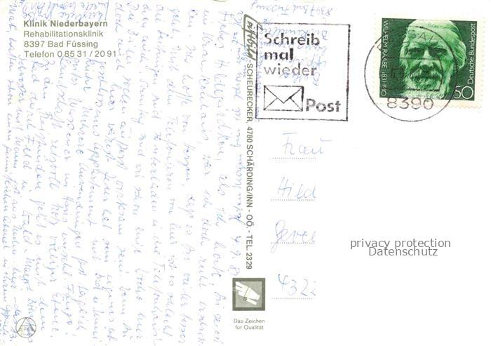 74156919 alte Postkarte BAD FuessING Rehabilitationsklinik Niederbayern Schwimmbad Klinikgebaeude Waldlandschaft Kuranlage postalisch gelaufen Fliegeraufnahme Erhaltung siehe scans [Karloger] KatCode: 11110009275116