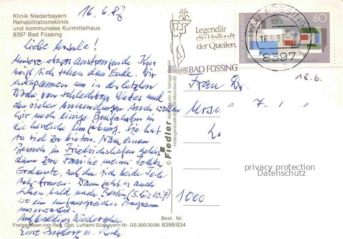 74044291 alte Postkarte BAD FuessING Rehaklinik Kurmittelhaus Fliegeraufnahme postalisch gelaufen Erhaltung siehe scans [WerneD78] KatCode: 11110009275116