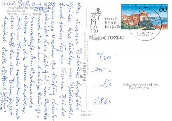 72833546 alte Postkarte Bad Fuessing Rheuma Reha Zentrum Johannesbad postalisch gelaufen Erhaltung siehe scans [FriedD77] KatCode: 11110009275116