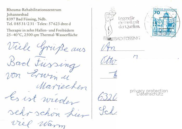 72769407 alte Postkarte Bad Fuessing Rheuma Rehabilisationszentrum Johannesbad postalisch gelaufen Erhaltung siehe scans [AndreD76] KatCode: 11110009275116