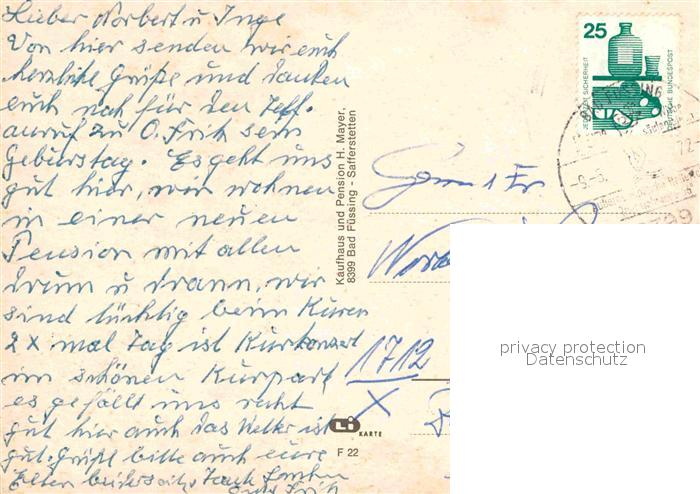72839256 alte Postkarte Bad Fuessing Safferstetten Thermalquelle Pension Mayer Kurpark Schwimmbad postalisch gelaufen Erhaltung siehe scans [LiesaD40] KatCode: 11110009275116