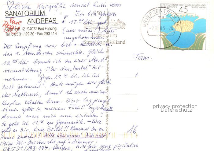 73574153 alte Postkarte Bad Fuessing Sanatorium Andreas postalisch gelaufen Erhaltung siehe scans [FriedD77] KatCode: 11110009275116