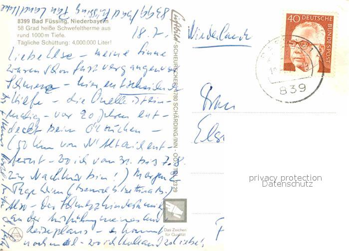 72655120 alte Postkarte Bad Fuessing Schwefeltherme Fliegeraufnahme postalisch gelaufen Erhaltung siehe scans [LiesaD40] KatCode: 11110009275116