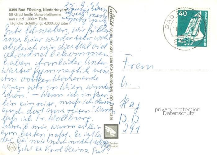 73766768 alte Postkarte Bad Fuessing Schwefeltherme Thermalbad Tennisplaetze postalisch gelaufen Fliegeraufnahme Erhaltung siehe scans [FriedD77] KatCode: 11110009275116