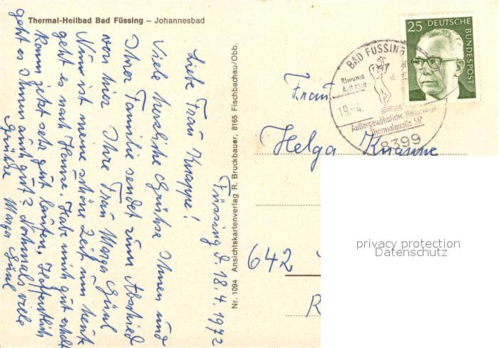 73272053 alte Postkarte Bad Fuessing Thermal Heilbad Johannesbad postalisch gelaufen Erhaltung siehe scans [FriedD77] KatCode: 11110009275116