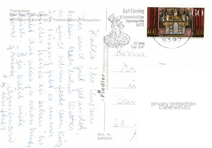 72885739 alte Postkarte Bad Fuessing Thermalbad postalisch gelaufen Erhaltung siehe scans [FriedD77] KatCode: 11110009275116