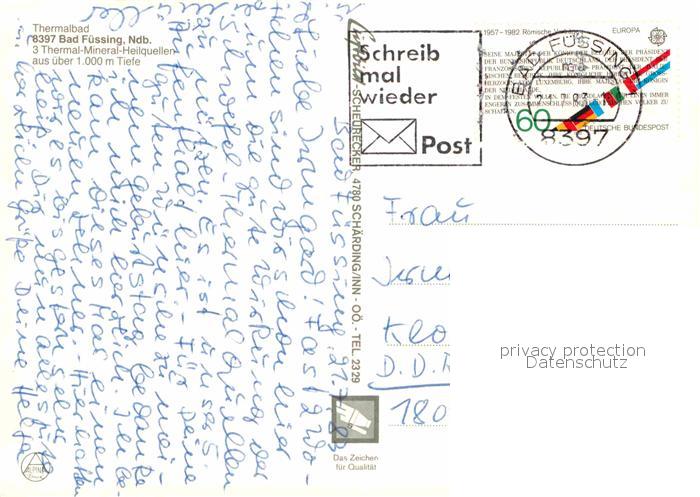 72724956 alte Postkarte Bad Fuessing Thermalbad postalisch gelaufen Erhaltung siehe scans [LiesaD40] KatCode: 11110009275116