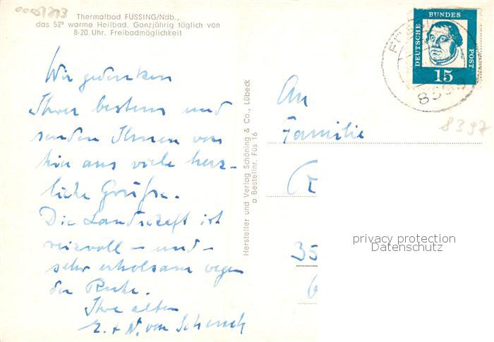 73857897 alte Postkarte Bad Fuessing Thermalbad postalisch gelaufen Erhaltung siehe scans [FriedD77] KatCode: 11110009275116
