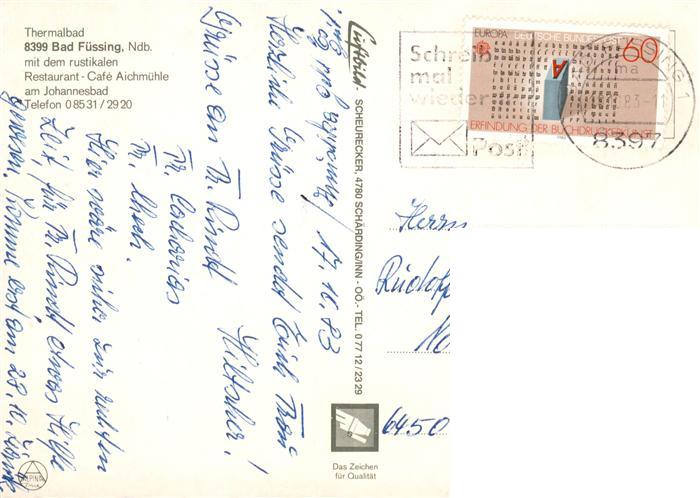 73888127 alte Postkarte Bad Fuessing Thermalbad Aichmuehle Restaurant postalisch gelaufen Erhaltung siehe scans [FriedD77] KatCode: 11110009275116