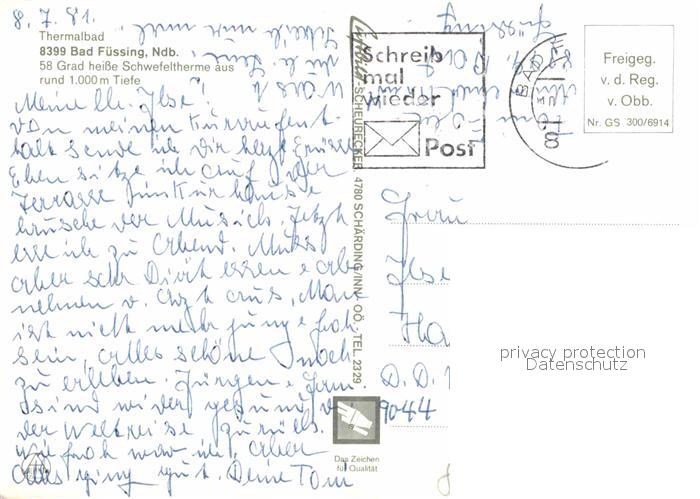 72752896 alte Postkarte Bad Fuessing Thermalbad Denkmal Luftbild postalisch gelaufen Erhaltung siehe scans [KathaD81] KatCode: 11110009275116