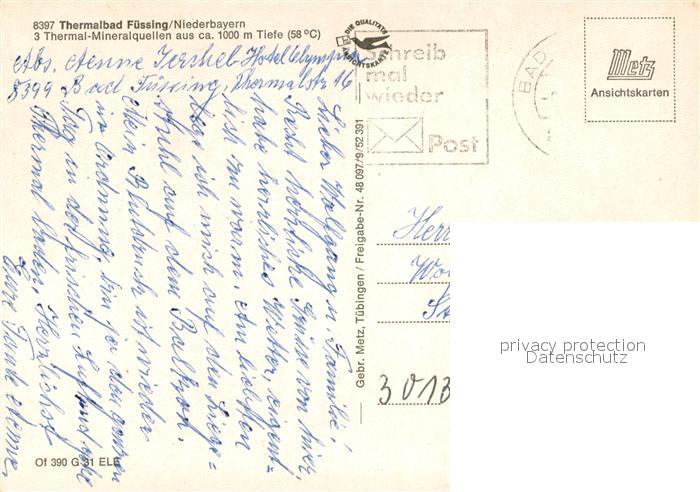 73667545 alte Postkarte Bad Fuessing Thermalbad Fliegeraufnahme postalisch gelaufen Erhaltung siehe scans [FriedD77] KatCode: 11110009275116