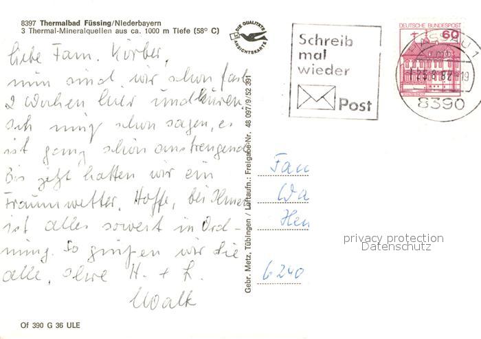 73182653 alte Postkarte Bad Fuessing Thermalbad Fliegeraufnahme postalisch gelaufen Erhaltung siehe scans [FriedD77] KatCode: 11110009275116