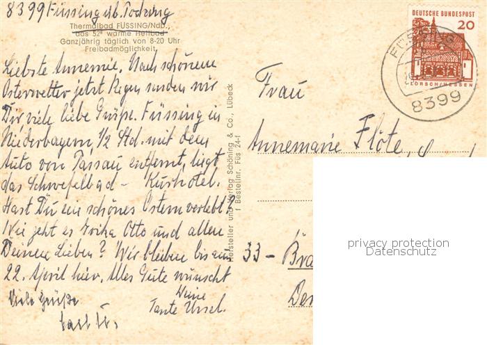 73776070 alte Postkarte Bad Fuessing Thermalbad Fliegeraufnahme postalisch gelaufen Erhaltung siehe scans [WerneD78] KatCode: 11110009275116
