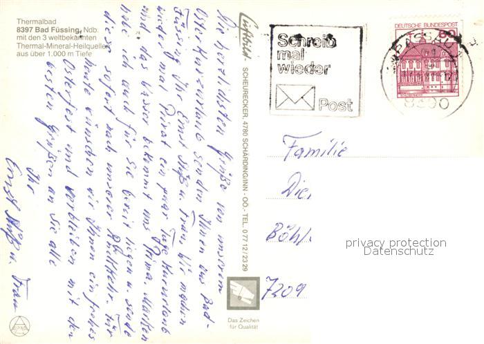 73101006 alte Postkarte Bad Fuessing Thermalbad Fliegeraufnahme postalisch gelaufen Erhaltung siehe scans [WerneD78] KatCode: 11110009275116