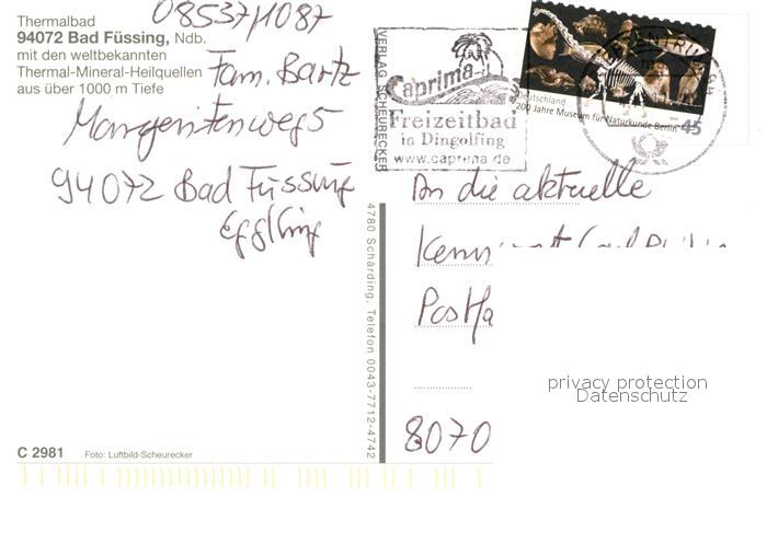 72950418 alte Postkarte Bad Fuessing Thermalbad Fliegeraufnahme postalisch gelaufen Erhaltung siehe scans [NatalD47] KatCode: 11110009275116